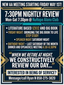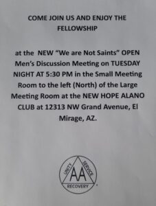 NOTE: In order to make changes to the meeting rooms (example: new storage cabinets; anything attached to the walls, like PA system, locker or a new bulletin board, etc.) must have approval from the NuHope Alano Club Board of Directors!